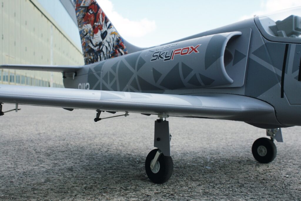 Es fällt sofort auf: Die Aero L-39 »Skyfox«, auch unter der Bezeichnung L-39 NG (NG steht für »Next Generation«) bekannt, verfügt über keine Tip-Tanks mehr. Der »Skyfox« ist eine Weiterentwicklung der »Albatros« und verfügt über einen neuen »nassen Flügel«, d. h. das Tragwerk ist mit integralen Tanks ausgestattet. Auch erhielt der »Skyfox« einen neuen Antrieb, das Zweiwellen-Turbofantriebwerk FJ44-4M des Herstellers Williams International mit einem sehr niedrigen Kraftstoffverbrauch. Mit einer neu entwickelten Avionik und einem HUD-System (Head-up-Display) ausgestattet, ist der »Skyfox« nicht nur ein militärisches Trainingsflugzeug, er ist auch mit dementsprechender Ausstattung als Gefechtsflugzeug einzusetzen. Im Jahre 2014 wurde das L-39NG-Programm gestartet und am 22. Dezember 2018 vollzog der erste Prototyp seinen Erstflug. Im Oktober 2024 verließ die erste L-39NG die Serienfertigung und wurde offiziell auf den Namen »Skyfox« getauft. Im Januar 2025 erhielt das tschechische Ausbildungszentrum der Luftwaffe seinen ersten »Skyfox«.