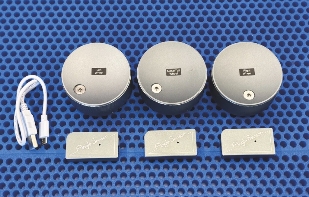Das Set wird in einem hochwertigen Kunststoffetui in ansprechender Kohlefaseroptik geliefert. Bereits beim Öffnen wird deutlich: Hier handelt es sich nicht um ein einfaches Zubehörteil, sondern um ein durchdachtes Präzisionswerkzeug. Die einzelnen Sensoren liegen sicher eingebettet in einer passgenau geschnittenen Schaumstoffeinlage und sind damit optimal für Transport und Aufbewahrung geschützt. Zum Lieferumfang gehört außerdem ein USB-auf-USB-C-Ladekabel zum Aufladen der Sensoren. Sowohl die drei Gewichtssensoren als auch die drei Winkelsensoren sind aus grau eloxiertem Aluminium gefräst. Die Verarbeitung wirkt …